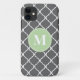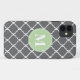 Ein elegantes, dunkelgraues und weißes marokkanisches Gitter-/Trellis-Muster mit einem stylischen Minzgrün und Weiß-Typenschild für Ihr individuelles Monogramm. Dieses mit Monogramm Designmuster ist ein großartiges Geschenk für Frauen und Mädchen, das helle Muster, moderne geometrische Muster und elegante personalisierte Geschenke Liebe.