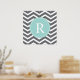 Passen Sie dieses lebendige, grau / grau, weiß und mint aquamarin türkisfarbene Zickzack Muster und Monogramm-Design mit Ihrem ersten.