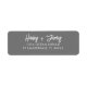 Graue Rücksendeadressen-Aufkleber mit modernem Drehbuch. Personalisieren Sie Ihre Informationen und die Wahl der Farben. Das sind definitiv unser Liebling und wir geben ihnen keinen Vorwurf. Stilvoll und elegant mit einem schlichten, modernen Look.