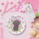 Graue Pudel-Geburtstags-Hunderosa-Ballone Pappteller