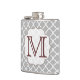 Graue Quarterfolienlattice Quarterfoil Monogramm Initial Personalisierte Custom Fabric Pattern Whiskey Flask