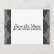 Klassische und elegante Raute Save the Date Postcard mit einem schlichten Hintergrund aus grauer Raute. Einfach an Ihre Hochzeitsdetails anpassen. Klicken Sie für weitere Anpassungsoptionen auf die Schaltfläche Anpassen.