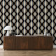 Graue schwarze Taupe Beige Tan Ogee Wave Muster Tapete
