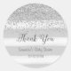 Rundaufkleber für Babydusche mit Imitaten mit silberfarbenem Glitzer und grauem Streifen Hintergrund.