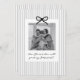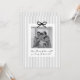Suchen Sie nach einer süßen und bedeutungsvollen Möglichkeit, geliebte Menschen zu bitten, die Patenschaft Ihres Babys zu übernehmen? Dieses Kartendesign ist die perfekte Art, die Frage zu stellen! Ob Sie ein Familienmitglied oder enge Freunde fragen, mit dieser Vorlage können Sie einen herzlichen Moment schaffen, den sie für immer in Ehren halten werden. Dieses Design verfügt über einen grauen gestreiften Hintergrund und eine schwarze Schleife sowie Platz für ein Foto Ihrer Wahl. Sie können die Farbe der Streifen, der Schleife und des gesamten Textes in diesem Design bearbeiten.