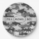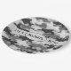 Graue Tarnung, die ein Jungen-Name personalisiert Pappteller