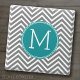 Graue und Aquamarine Chevronen - Custom Monogram Glasuntersetzer