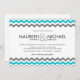 Moderne Zickzack Hochzeitseinladungen. Tropisches Aqua blau, grau und weiß für lässigen Strand oder Hochzeiten in Urlaubsort. Trendy Zickzack-Druckmuster mit fett-minimalistischer Sans-Serifen-Typografie kann so angepasst werden, wie es ist, oder Dinge bewegen, um schöne Do-it-yourself Hochzeitseinladungen zu schaffen. Sehen Sie es auf allen erschwinglichen Papieroptionen. Besuchen Sie unser Geschäft, um mehr einzigartige Hochzeitskits in anderen Größen, Farben und Stilen zu sehen.