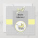 Stilvolle quadratische Babydusche in hellgelb, mit maßgeschneidertem grauem Text für die individuelle Gestaltung. Die Rückseite der Einladung ist in einem hellgrauen und weißen Polka Punkt Muster, mit süßen Grafiken eines gelben Babywagens und einem blass Satin-Look Bug getan. Personalisieren Sie den dunkelgrauen Text für Ihre Babydusche.