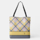 Die angenehme Farbkombination in diesem karierten Muster Totbeutel macht es zu einem der beliebtesten Tragetaschen. Erstellt in einem frischen, gelben und grauen kariert mit schwachen Farbtupfern von pfirsichrosa und schwarzen Akzenten. Personalisieren Sie einfach den Text des Monogramms im einfachen Zazzle-Editor. Ihre Wahl von zwei Stilen und Größen.