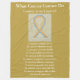 Kunst zeigt den "Gold und Gray Ribbon Angel", um Unterstützung für den Hirnkrebs bei Kindern zu zeigen. Das Band kombiniert das Goldband für Krebs im Kindesalter und das graue Band für Hirnkrebs. Die Kunst zeigt einen Schutzengel mit einem Graustreifen und einem Goldband und das Gedicht "Was Krebs nicht tun kann" gedruckt darum. Die Gedichtworte sagen: "Was Krebs nicht tun kann, Krebs ist so begrenzt... Es kann die Liebe nicht verkrüppeln. Es kann die Hoffnung nicht zerschmettern. Sie kann den Glauben nicht korrodieren. Es kann den Frieden nicht zerstören. Es kann Freundschaft nicht töten. Es kann Erinnerungen nicht unterdrücken. Es kann den Mut nicht zum Schweigen bringen. Es kann nicht in das Soul eindringen. Es kann nicht ewiges Leben stehlen. Es kann den Geist nicht besiegen. -Autor unbekannt" Machen Sie individuelle Vlies für sich selbst oder als Geschenk für einen geliebten Menschen. Fügen Sie Ihre eigenen Worte oder Bilder zu dieser weichen Chemodecke für besondere Geschenke aus dem Bewusstsein, Krebs.