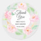 Girly "danke" Aufkleber für eine Babydusche. Dieser hübsche Aufkleber hat einen hellgrauen Hintergrund, einen eleganten dunkelgrauen Text und einen blütenrosa/pfirsichfarbenen und grünen Blumenkronenrahmen aus Pfannenbäumen. Persönlich gestalten, indem Sie Ihren eigenen Text, Namen und Babydusche hinzufügen. Sie können sogar die Textfarbe und den Stil des Schriftartes mit der Option Anpassen ändern.
