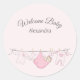 Ein bezaubernder und vollständig anpassbarer Rosa- und Grauaufkleber für Begrüßungs-Baby-Girl-Dusche, klassischer Rundaufkleber, macht Ihren POP. Passend zu unseren Begleit- und Koordinierungsprodukten. Wenn Sie Hilfe bei der Anpassung dieses klassischen Rundaufklebers wünschen, schreiben Sie mir bitte eine E-Mail an lily_and_company@yahoo.com.