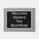 Perfekt chic und klassisch schwarz, weiß und grau Willkommen an Bord Die ___________ Türmatte für Ihr Boot Yachthafen Schlupf anpassbar mit Ihrem Bootsnamen