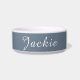 Schiefergraue und weiße Minimale handgeschriebene Name Katze Hundekuchen Schüssel. Sie können auch die Personalisierung entfernen und das elegante und minimale Farbdesign genießen.