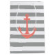 Personalisiertes graues und weiß gestreiftes Muster mit korallrosa Ankerbeutel. Das Design besteht aus einem grauen und weißen Streifen und einem korallenrosa Anker.