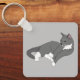 Graue und weiße Tuxedo Katze Schlüsselanhänger