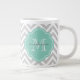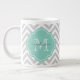 Graue und Zickzack Aqua-Monogramm Jumbo-Tasse