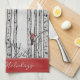 Dieses moderne Küchentücher mit handgezeichnet Birkenbäumen mit roten Kardinälen, die auf den Zweigen in schwarzer Tinte stehen, mit Schatten im Kreuzschlüpfsstil und einem eleganten, hellgrauen Hintergrund. Personalisieren Sie Ihren Lieblings-Urlaub Gruß, einen Namen oder einen Familiennamen.