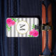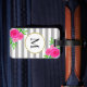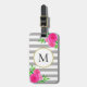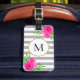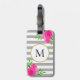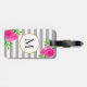 Graue weiße Streifen Pink Aquarell Floral Monogram Gepäckanhänger