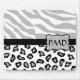 Graue, weiße und schwarze Zebra & Geparden Haut na Mousepad