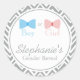 Graues Zickzack Geschlecht offenbart Aufkleber. Das Design weist ein Zickzack, grau-weißes Muster auf, in der Mitte ein weißer Kreis mit einem rosa Bogen und einer blauen Bogen-Krawatte und dem eigenen Text.