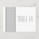 Chic und moderne Zickzack Grenz-Tischnummer Postcard mit einem Zickzack Muster in Grau und Weiß. Dieses stilvolle Design Set den Ton für eine elegante Hochzeit. Einfach anzupassen, fügen Sie einfach die passende Tischnummer(en) in das Textfeld ein. Klicken Sie auf "Anpassen", um weitere Personalisierungsoptionen zu erhalten.