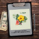 Zwischenablage mit großer Logo-Vorlage als Hintergrund. Dunkelgrau mit schwarzem Rand und schwarz, gedruckte Textvorlage unten. Nutzen Sie das Büro, die Tagungen, die Messe oder jede Veranstaltung, um Ihre Marke zu stimulieren. Stellen Sie sicher, dass Ihr Logo groß genug ist, um in dieser Vorlage nicht verschwommen zu sein.