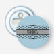 Eleganter und eleganter Deko Blühe Button Bottle Opener mit einem extravaganten, wirbelgrauen Rahmen. Einfach anpassen, einfach personalisierten Text in die vorhandenen Textfelder einfügen. Ändern Sie die Hintergrundfarbe in eine beliebige Farbe. Klicken Sie auf "Anpassen", um weitere Personalisierungsoptionen zu erhalten.