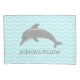 Blauer und grauer Delphin des personalisierten Aqua scherzt Schlafzimmerkissenbezug. Niedlicher Kissenkasten für den Raum der Kinder mit grauen Fischen/Säugetier. Kundenspezifische See-/Strandthema-Wohngestaltung für Kind. Addieren Sie Ihr eigenes Namens-, lustiges Zitat oder Monogramm. Seeseiten-Illustrationsentwurf für Sohn, Tochter, Enkel, Neffeen, Enkelkind etc. neutralen Entwurf Geschlechtes für Jungen oder Mädchen. Kundenspezifischer Farbhintergrund hinter Zickzack Muster. Zickzackdruck. Idee des einzigartigen Geburtstags- oder Weihnachtsgeschenks.