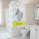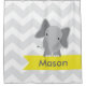 Ein niedliches graues Zickzack Muster, eine gelbe Flagge und eine Elefantillustration wird auf diesem Kinderduschvorhang gekennzeichnet. Personifizieren Sie leicht mit dem Namen eines Kindes.