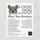 Grauer Hund mit Knochen, Hund Boarding, Werbe-Flyer vom Business Card Store.