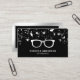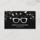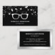 Berufliche Optometriker Visitenkarte mit wunderschönen Silber Sterne Konfetti mit Imitaten silberne Akzente auf einem schwarzen Hintergrund. Fügen Sie Ihren Namen und Ihre Kontaktdaten hinzu, um einen bleibenden ersten Eindruck zu machen.