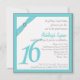 Mit einem farbenfrohen Aqua-Blau, Grau und Weiß-Einladung, mit einem türkisfarbenen, mit einem DRUCKT bedruckten Bänder und einer Juwelenfibel, verleihen Sie einer besonderen Sweet 16. Geburtstagsfeier einen geistlichen Glamour. Wenn Sie andere passende Elemente benötigen oder eine andere Farbkombination wünschen, senden Sie bitte eine E-Mail an niteowlstudio@gmail.com. Der entsprechende Umschlag ist unten dargestellt.