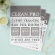 Grauer Teppichboden, Teppichreiniger, Flyer für die Reinigungsservice-Werbung durch den Business Card Store.
