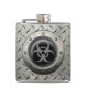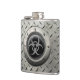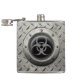 Dieses einzigartige grafische Eigenschaften, die das Biogefahrensymbol innerhalb eines Kreisrahmens durch eine Stahlplatte umgab. Metallische Beschaffenheiten und Farben gibt dem Muster ein starkes industrielles Gefühl. Große Niete erscheinen im Edelstahlrahmen, der geschaffen wird, um einen Maßeffekt 3 zu haben. Kratzer und die Verschleißkennzeichen bedecken dieses gealtert und getragenes biohazrd Zeichen, das häufig benutzt ist, eine Zombie-Apokalypse zu symbolisieren