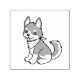 Grayskalierte Cartoon-Abbildung eines sitzenden Huskhundes mit einem glücklichen Grinsen, Zunge heraus. Ein einfaches Kerchsen ist um den Hals gebunden.