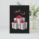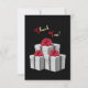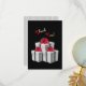 Graue und weiße Geschenke mit großen roten Bögen machen ein schönes Motiv für Ihren Urlaub. Die Geschenke heben sich vor dem schwarzen Hintergrund ab. Rot und goldfarbene Schriften sorgen für eine Touch Urlaub! Die drehend Seite ist grau-weiß pinstripe. Personalisieren Sie es mit Ihrer Nachricht.