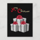 Graue und weiße Geschenke mit großen roten Bögen machen ein schönes Motiv für Ihren Urlaub. Die Geschenke heben sich vor dem schwarzen Hintergrund ab. Rot und goldfarbene Schriften sorgen für eine Touch Urlaub! Die drehend Seite ist grau-weiß pinstripe.