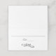 Eine hübsche, graue und weiße Tischkarte, Platzkarte, Begleitkarte mit einem Platz für Ihren Gastnamen, Tischnummer und ein wirbelndes blüh-Design ganz unten.