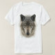 Ein Portrait eines schönen grauen Wolfs. Das Wolfsgesicht auf der Vorderseite und ein naher Aufstieg auf diese Augen auf der Rückseite des Shirts.