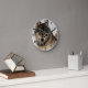 Grauer Wolf oder Timberwolf, die in den Schnee Runde Wanduhr
