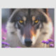 Grauer Wolf Stare - Lila Blumen Seidenpapier