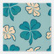 Grünes, beiges Kleeblatt mit handgezeichnetem Muster. Schön und schlicht, 4 Blätter in Grün- und Beigetönen auf weißem Hintergrund. Das Design ist ein digitales zeichn.