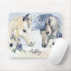 Graublaues Pferd mit Blume personalisierter Name Maus-Pad, ein schönes Geschenk für Pferde Reitfreunde.