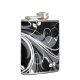 Graues Blumenmuster auf Schwarzem Flachmann