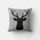Modernes und schickes schwarzes Rotwildkopfkissen mit grauem hölzernem Musterentwurf. Ultra heißer Trend in Wohngestaltung ROTWILD gehen Silhouetten voran. Fügen Sie dieses Modedekorateurkissen Ihrem vorhandenen Dekor hinzu, um Ihre einfache und schnelle Art zu aktualisieren.