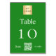 Grüner Hintergrund, weißer Text. Personalisieren Sie Ihr Firmenlogo und fügen Sie Ihren Webseitenlink zum QR-Code hinzu. Personalisieren Sie Ihre Tischnummern und fügen Sie sie hinzu. Fügen Sie Ihre Nummern eins nach dem anderen hinzu.