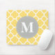 Graues Monogramm Gelbes Quatrefolienmuster Mousepad