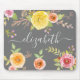 Gelbe, rosa, rote und orangefarbene Aquarellfarben und weiße Schriftzeichen überlagern einen weichen grauen Hintergrund auf diesem wunderschönen, rustikalen, romantischen, Vintagen Blumenmousepad, das aus individuelle Name besteht. Fügen Sie Ihren Namen zu personalisieren. Macht jedes Mal, wenn Sie es benutzen, eine elegante und stilvolle Aussage. Ein großartiges Geschenk für einen Freund und auch für dich! Geben Sie einfach den Namen Ihrer Wahl ein und Sie können dieses Mousepad ganz einfach personalisieren. Bitte schicken Sie mir eine Nachricht mit Fragen oder Wünschen.